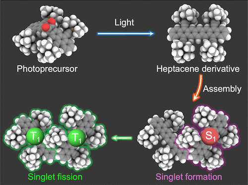 HASOBE(A02), HIROSE(C01) and YAMAUCHI(C01) et al. have published their research about photophysical processes of a heptacene derivative regarding monomeric behavior in homogeneous solution and singlet fission in thin film in J. Am. Chem. Soc.