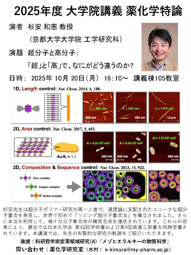 ・講演題目 超分子と高分子:「超」と「高」で、なにがどう違うのか?