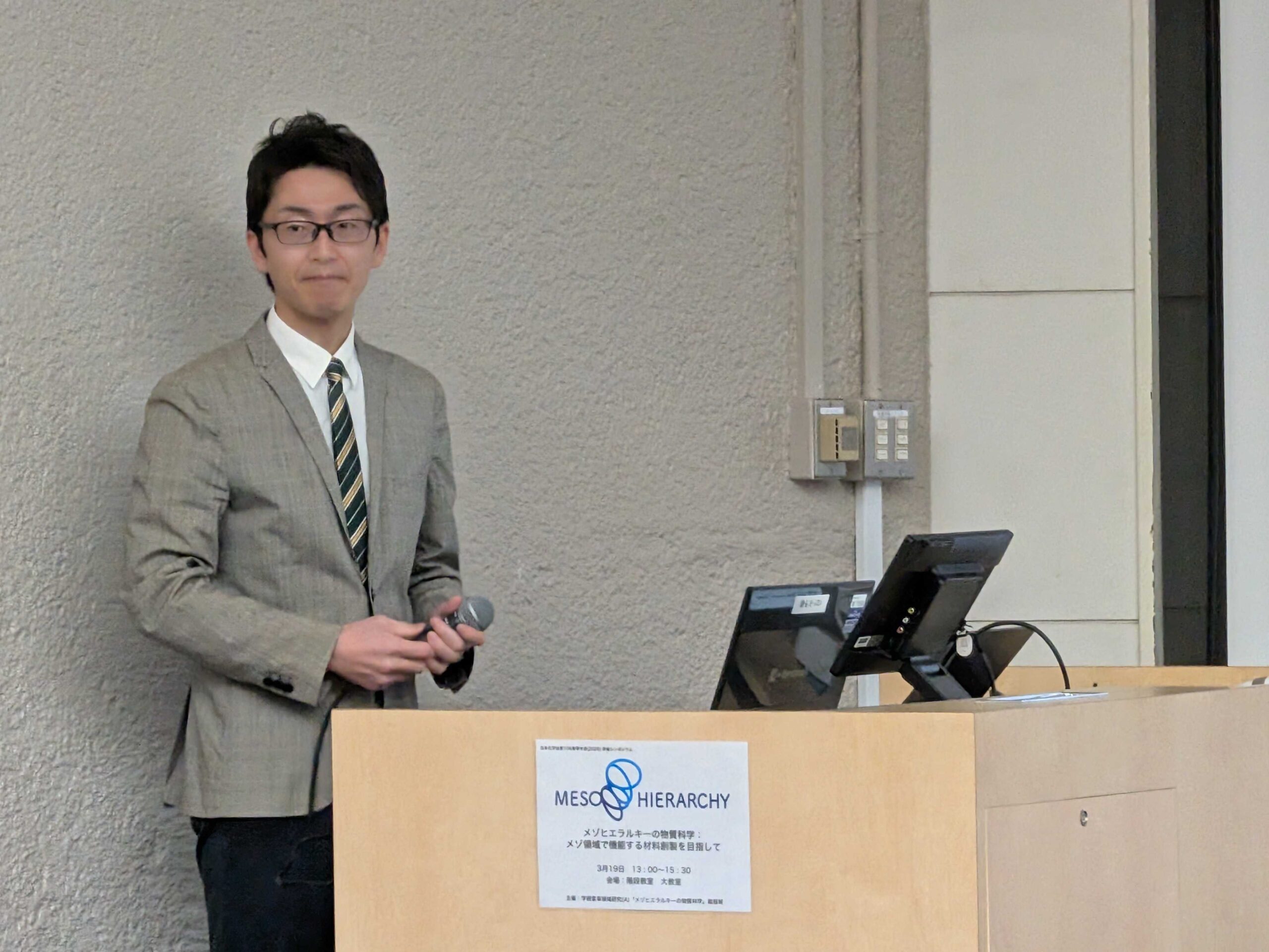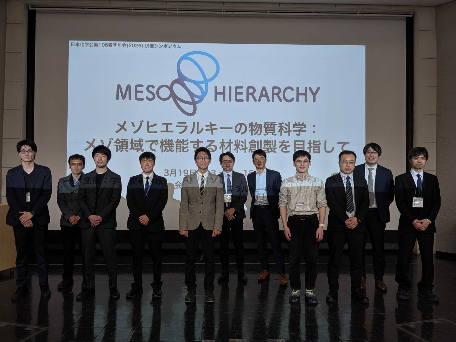 日本化学会第106春季年会にて, 「メゾヒエラルキーの物質科学:メゾ領域で機能する材料創製を目指して」 と題したシンポジウムを開催しました.第1期公募班で活躍した若手~中堅メンバー計8名がそれぞれの最新メゾヒエラルキー研究について発表し,活発な議論が行われました.会場にお越し頂いた皆様ありがとうございました!